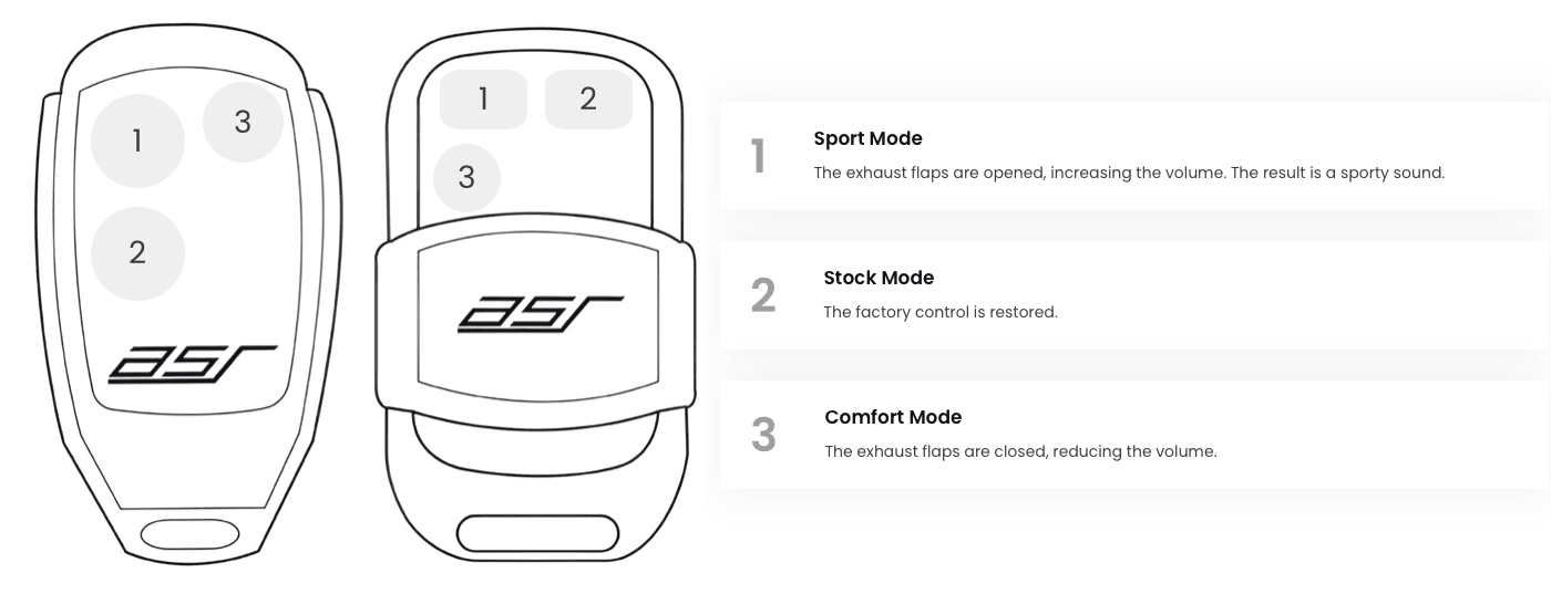 BOUTON SPORT N°1 : Les valves/clapets sont ouvertes, ce qui augmente le volume sonore => Son Sportif